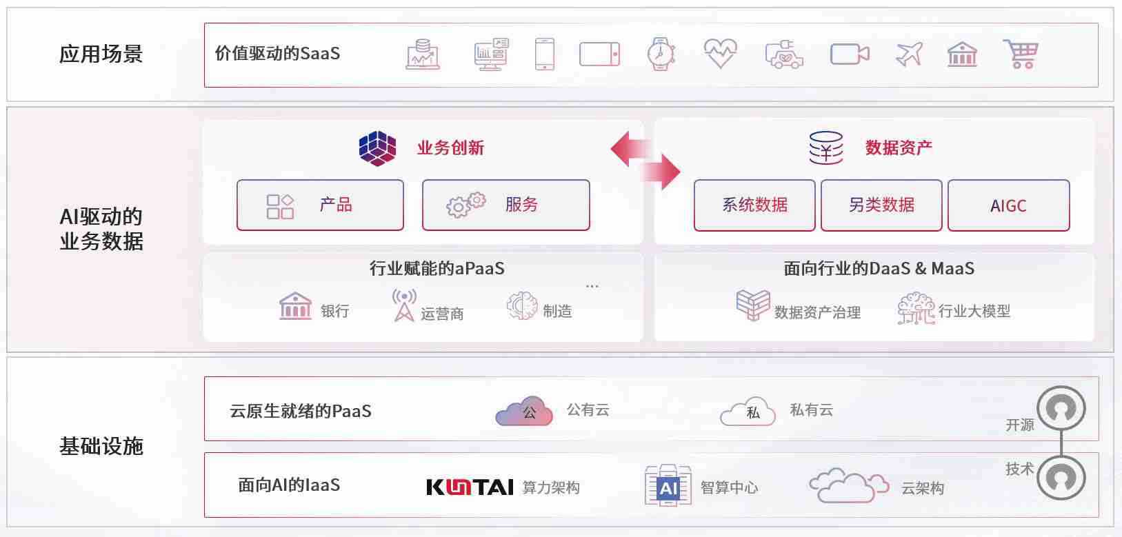 数字时代,,,,围绕企业数字化转型的关键要素,,,欧博ABG数码开创性的提出数云融合战略和技术体系框架,,,着力在云原生、、、数字原生、、AI原生和信创产业上架构产品和服务能力,,,,为处在不同数字化转型阶段的快消零售、、、汽车、、、、金融、、、、医疗、、政企、、、教育、、、、运营商等行业客户提供泛在的敏捷IT能力和融合的数据驱动能力,,构建跨界融合创新的数字业务场景和新业务模式,,,,助力企业级客户建立面向未来的核心能力和竞争优势,,,全面推动社会的数字化、、智能化转型升级。。